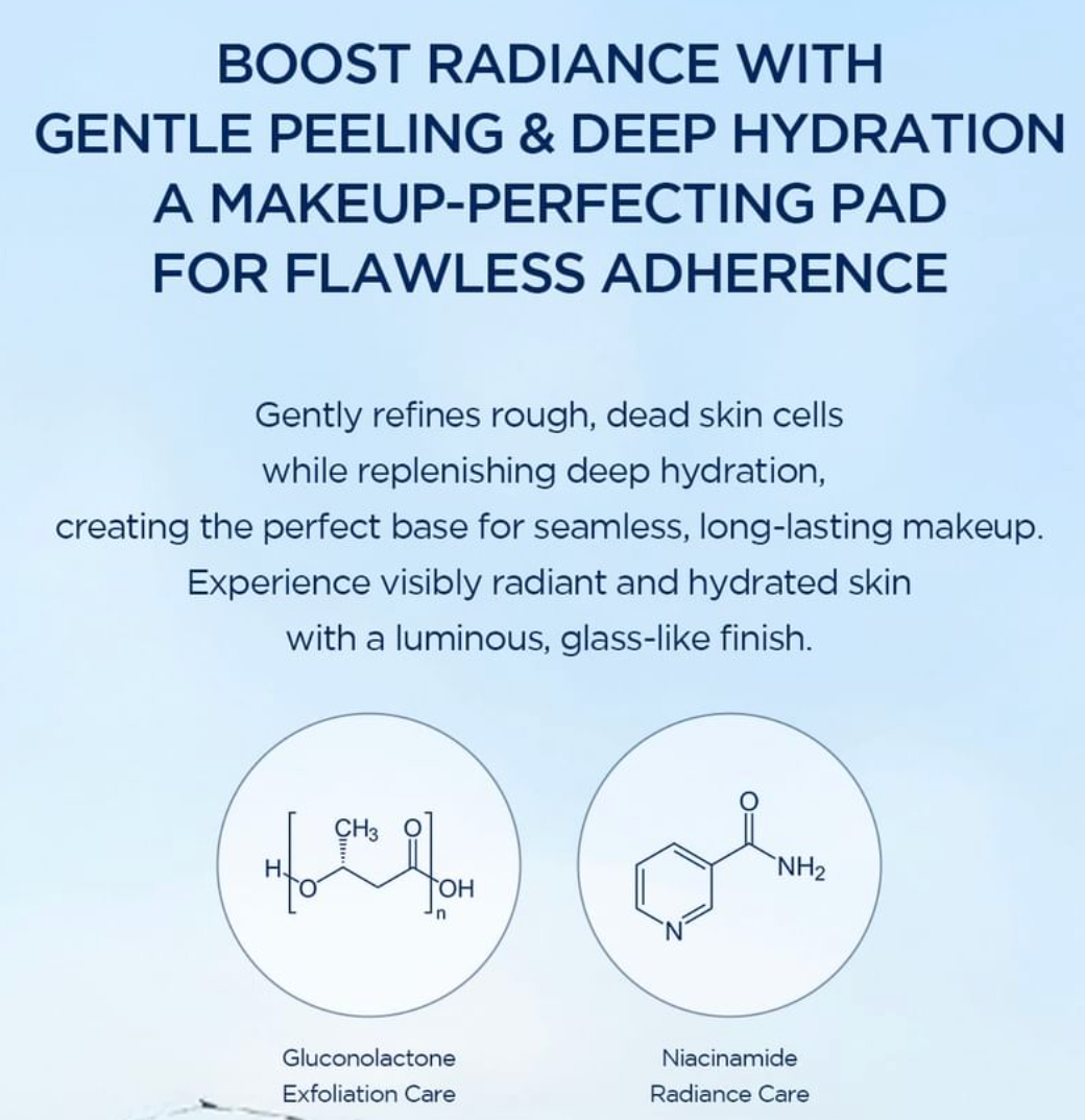 De dubbele zijde van de pad met een zachte jellykant en een licht getextureerde kant maakt het mogelijk om zowel te hydrateren als zacht te exfoliëren, waardoor de huid glad, soepel en stralend aanvoelt.